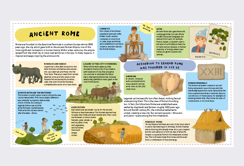 When the foundations of the ancient city of Rome were laid, no one had any idea that it would eventually develop into one of the most significant empires in human history; an empire which in its heyday covered large parts of Europe, Britain, regions around the Mediterranean, and lands by the Black Sea. The Roman Empire inspired the entire world, especially in regards to arts, architecture, language, politics, trade, and military. Let us playfully learn about Rome, one of the most interesting civilisations of the ancient times.