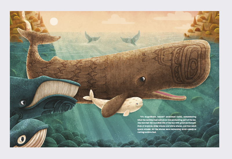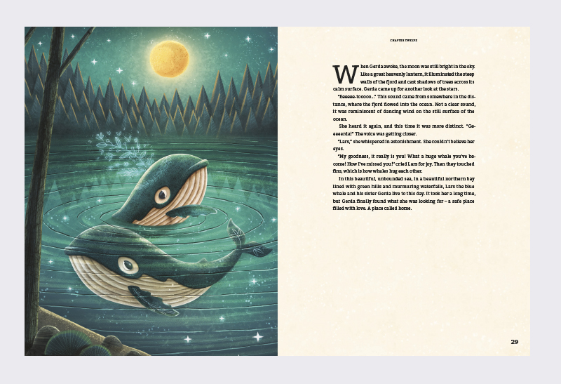 Gerda the little whale has a happy childhood. But then something unexpected happens and Gerda is left alone, without her family. Feeling sad and lonely, she roams the oceans. Eventually she makes new friends – killer whales, penguins, seagulls, even an octopus! Each new friend teaches her something interesting. Not only does she learn about how others live, she discovers a lot about the fascinating world she is swimming through. But will little Gerda find what she is looking for?