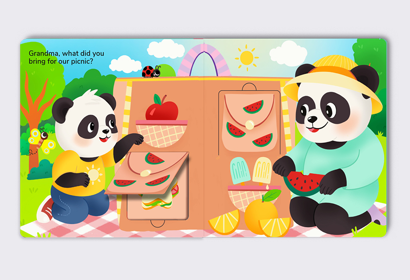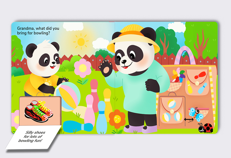 What’s inside Grandma’s Everything Bag? Only the most exciting surprises! Join Baby Panda and Grandma Panda as they unpack a bag full of love, laughter, and imagination. From star-shaped sandwiches for a picnic to silly shoes for bowling, each flap reveals a new treasure—and a new memory to share.