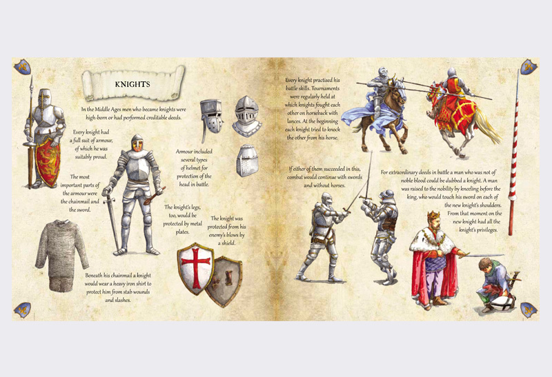 You can learn the details of the life of medieval knights in a castle. You can become the defender of your medieval castle. You will learn which weapons were used by the castle conquerors, how medieval knights defended against them, what was the life in a castle like. You will see several parts of the castle, read about knights and their life. You will learn how to cook favourite medieval dish and learn many other interesting information about this adventurous era.