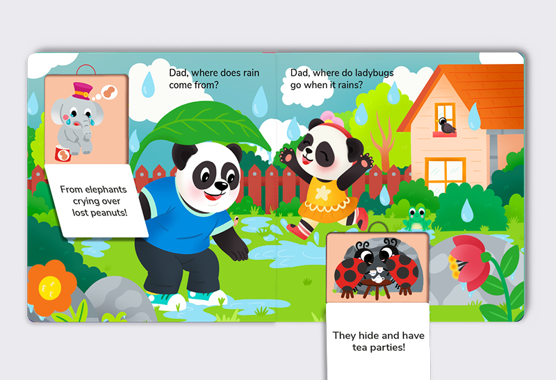 Get ready to giggle! A hilarious and heartwarming lift-the-flap board book starring an inquisitive Baby Panda and their lovable, know-it-all Dad. Whether it’s answering big questions like “Why is the sky blue?” or solving everyday mysteries like “Where did my sock go?”, Dad always has an answer . . . even if it’s not exactly right!