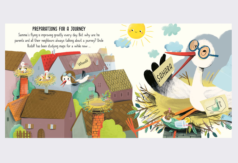 Summer days are almost over and little stork Samie, who just learned how to fly, is watching his parents, relatives and all stork neighbours in amazement. They are all preparing for a journey.