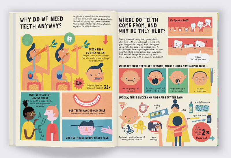 Teeth? A strange subject for a book, you say… But there are lots of toothy secrets to discover. Such as about where teeth come from, what they look like inside, why they can hurt horribly, why we only grow two sets – so the sooner we learn to look after them, the better. With engaging content and interactive elements, readers are in for an educational and entertaining exploration of the world of teeth.