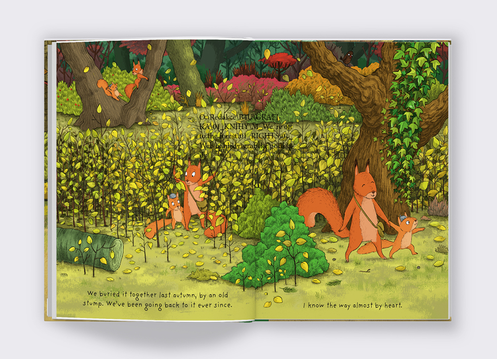 Autumn is here. The forest is awash with colour. Leaves flutter to the ground, where they rustle underfoot. It’s getting colder. The animals are preparing for winter. A daddy squirrel and his son go to the forest every day – for stores, and for something else. Shh … Do you hear that? A story is coming your way. A story tender and warm, about an ordinary, extraordinary forest, ordinary, extraordinary treasure within it, and how even little things can change the big, wide world.