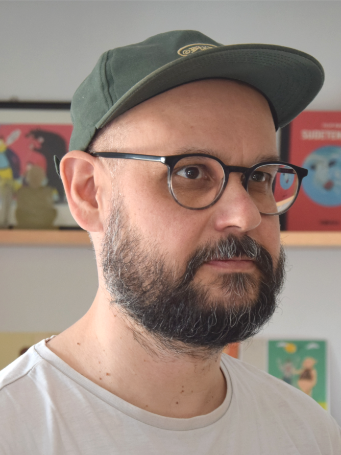 Filip Raif (1943) was born in Jeseník. He works in illustration and graphic design. In his work, he uses a playful style with elements of mystification to explore the history of his native region – Jak Vinca Priessnitz ke štěstí přišel (How Vinca Priessnitz Found Happiness, 1998), Finkamannla (2015) and the endless collection of postcards AltvaterPohledy. Since 2015, he has been a regular contributor of illustrations to Raketa magazine. As a colorist, he participated in the comics Zátopek (2016) and Zatím dobrý (2018) by Jaromír 99 and Jan Novák. He is also the co-author of visuals for the music groups Kafka Band and Letní kapela. He still lives in Jeseník.