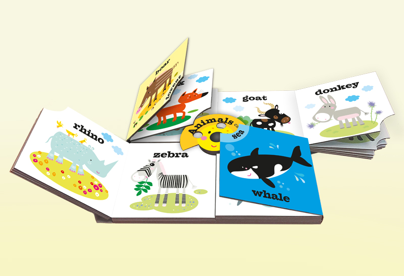 For example, animals that live on the farm, in the woods, in the jungle and in the sea. All children need to do is to turn the wheel and choose which little book to open. They can also learn what happens in spring, summer, autumn and winter. The rotating mechanism on the book opens the way to the chosen season. And what about square, rectangle, triangle and circle? These are the shapes that form the pictures in the individual books. A world full of shapes awaits young readers. Let’s turn the wheel and choose which book to open!