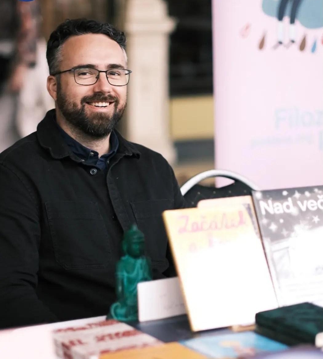 Michal Štěpánek (1984) studied humanities at the Faculty of Philosophy in Pilsen. He is the author of the children’s books Nad večerní černí (Above the Evening Black, 2020) and KAMaRÁDI – Lesní příběhy (FRIENDS – Forest Stories, 2021). The interactive book Začátek a konec (The Beginning and the End, with Marta Kelbl) was selected for the prestigious international selection The BRAW Amazing Bookshelf 2025 at the Bologna Children’s Book Fair. For the book Malý červený míč (The Little Red Ball, with Filip Pošivač), he received the Teachers’ Award in the Children’s Heart Book competition. His titles also regularly appear in the Best Books for Children catalog and in the Most Beautiful Czech Book competition. As an editor, he collaborated with Jan Lípa on the books Slovo Buddhovo (The Word of Buddha) and Čínský mudrc Tao (The Chinese Sage Tao). He has a long-standing interest in Tibetan Buddhism and practical philosophy in the tradition of František Drtikol. He works in insurance and also runs a small publishing house, LUX, where he publishes poetry, Buddhist literature, and children’s books. He derives the greatest joy from writing for young readers, inspired by his own four children.